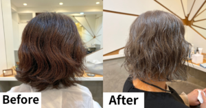 - 最後の調整カットをして見た目年齢マイナス10歳のスタイルの完成です。