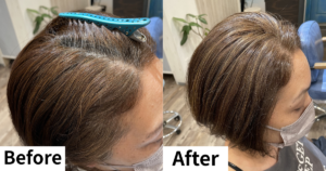 今回のお客様は、自前の白髪を活かして白髪をぼかしたいという50代女性の方です。